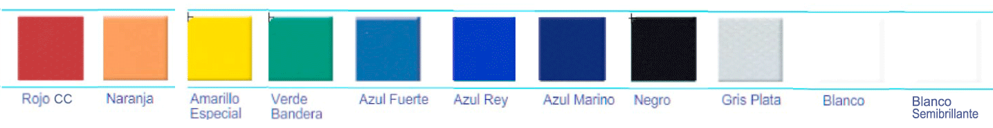 Tela 100% poliéster de alta tenacidad cubierta por ambos lados de PVC flexible. Disponible en diferentes colores
